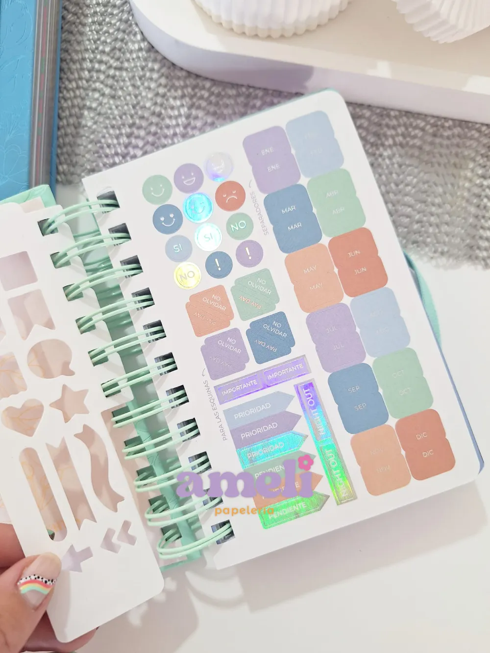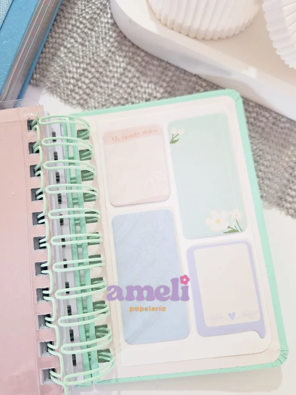 • Incluye sticky notes, stickers, bookmark y bolsa individual