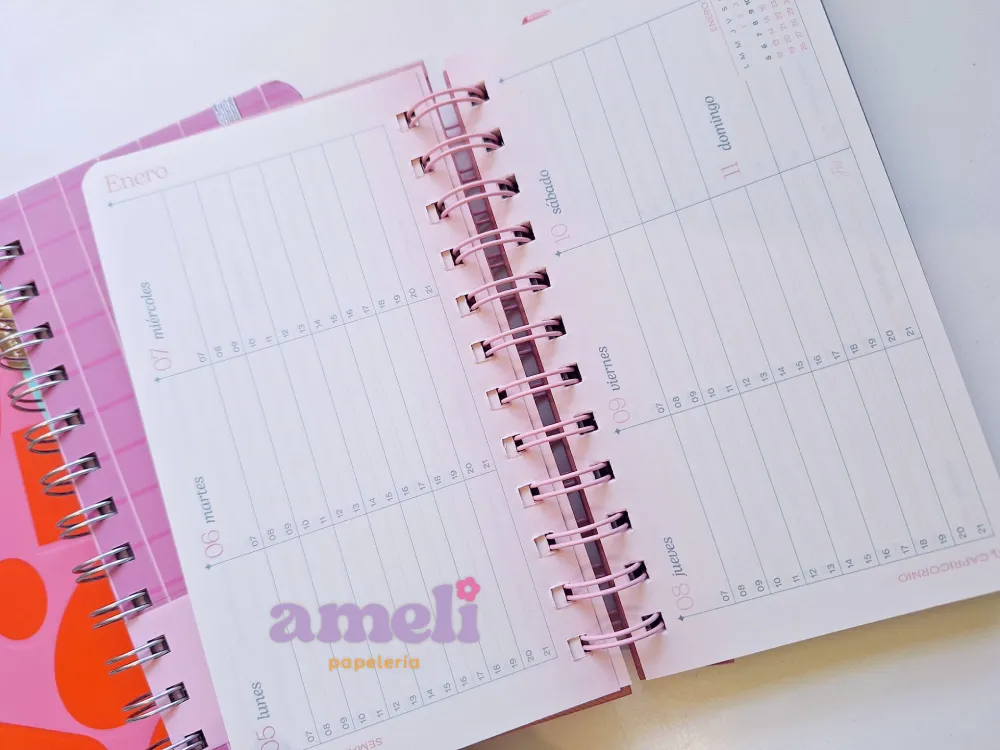 96 hojas de 80g Tamaño 16,5 x 9,5 cm Vista semanal 7-21hs