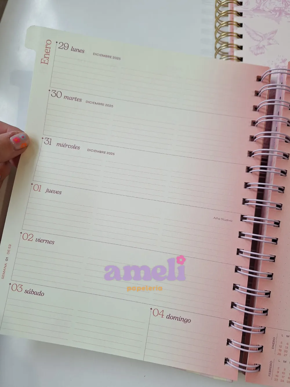 Tamaño 19 x 25 cm – Vista semanal – 112 Hojas – Papel 95 g.