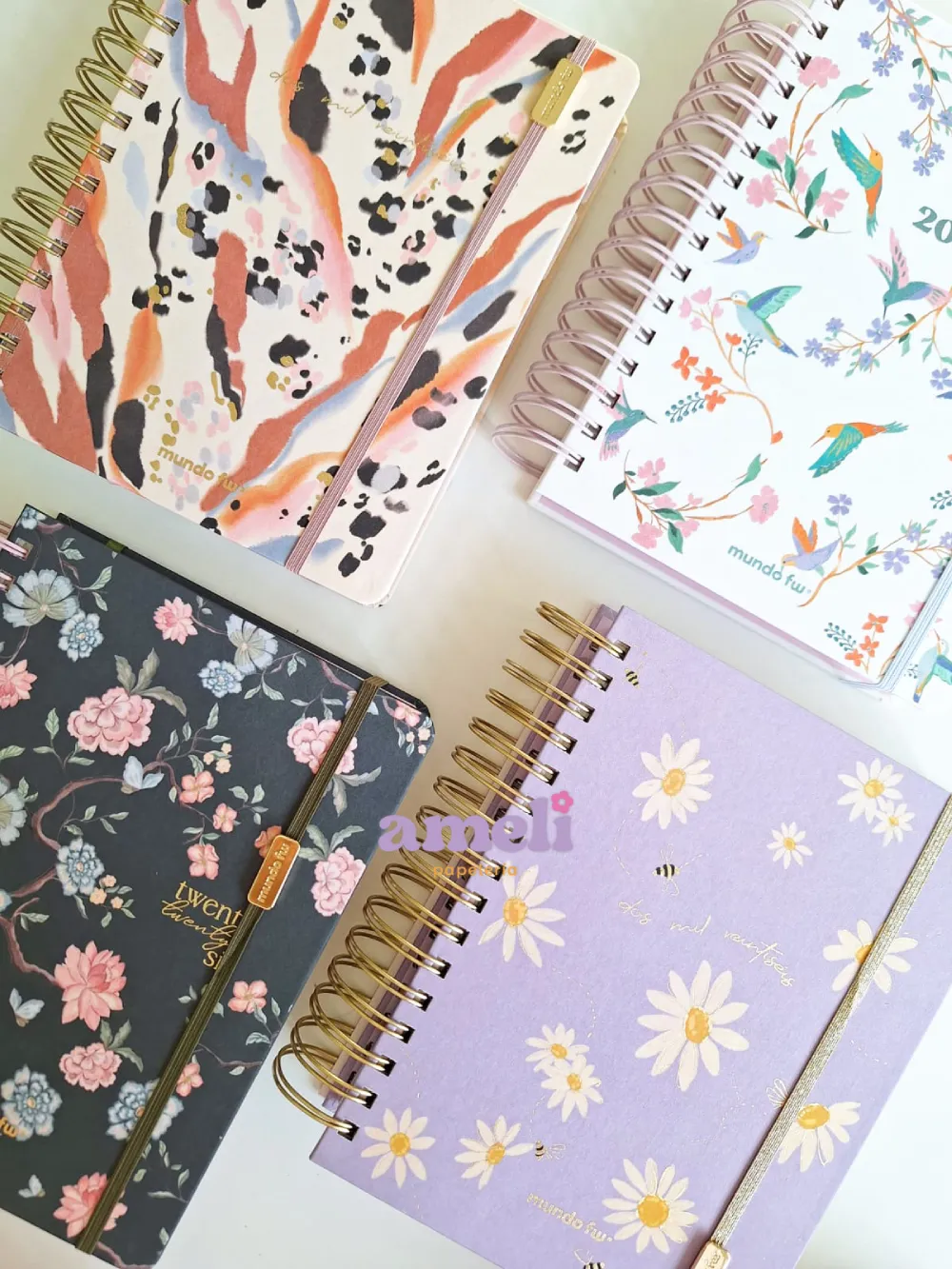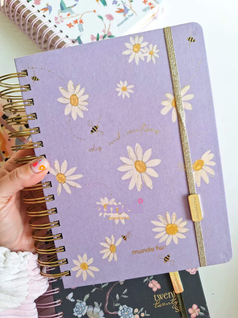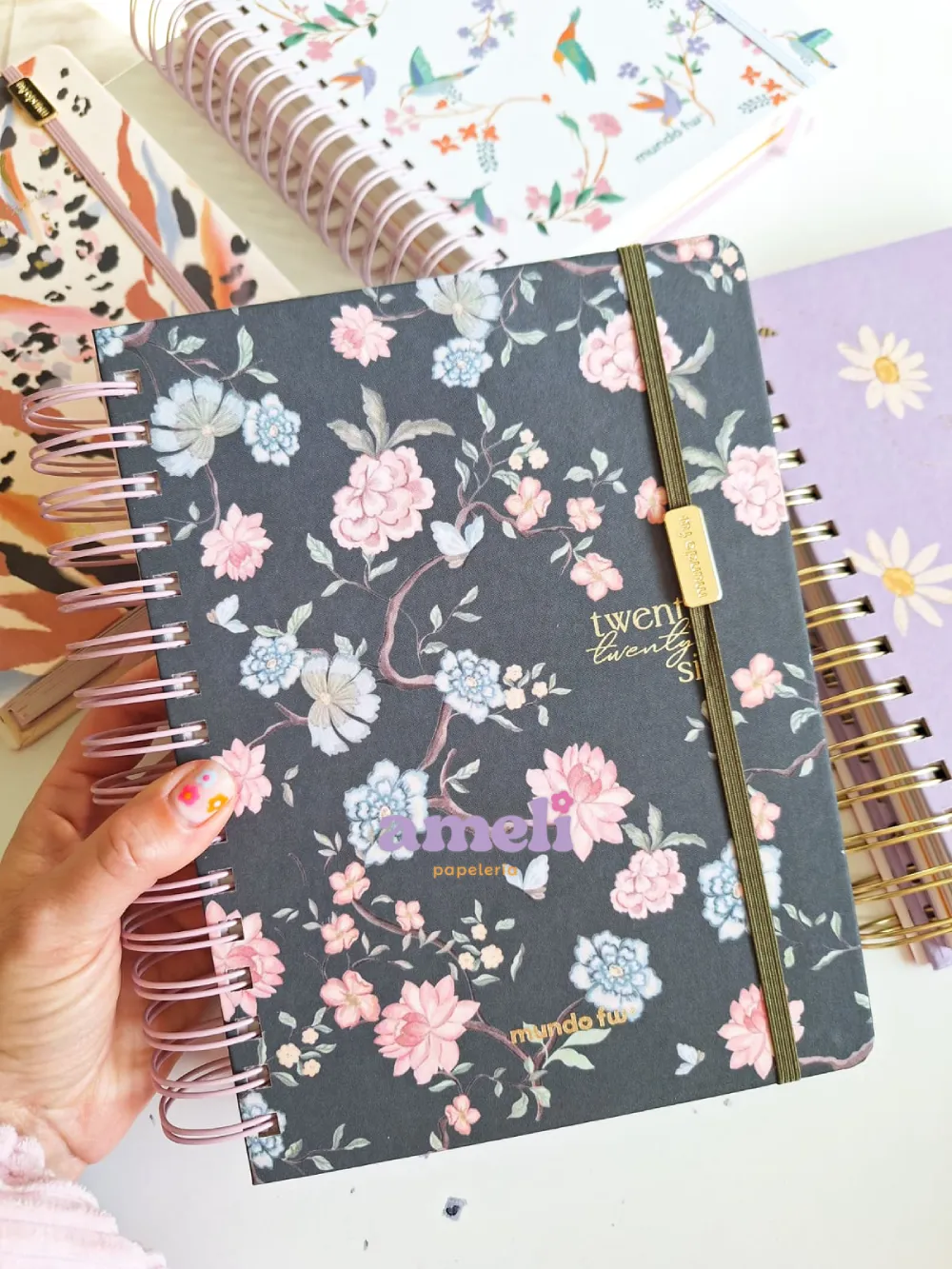 Impresa en lino + stamping – Caratulas mensuales con solapas – Charm y elastico a tono