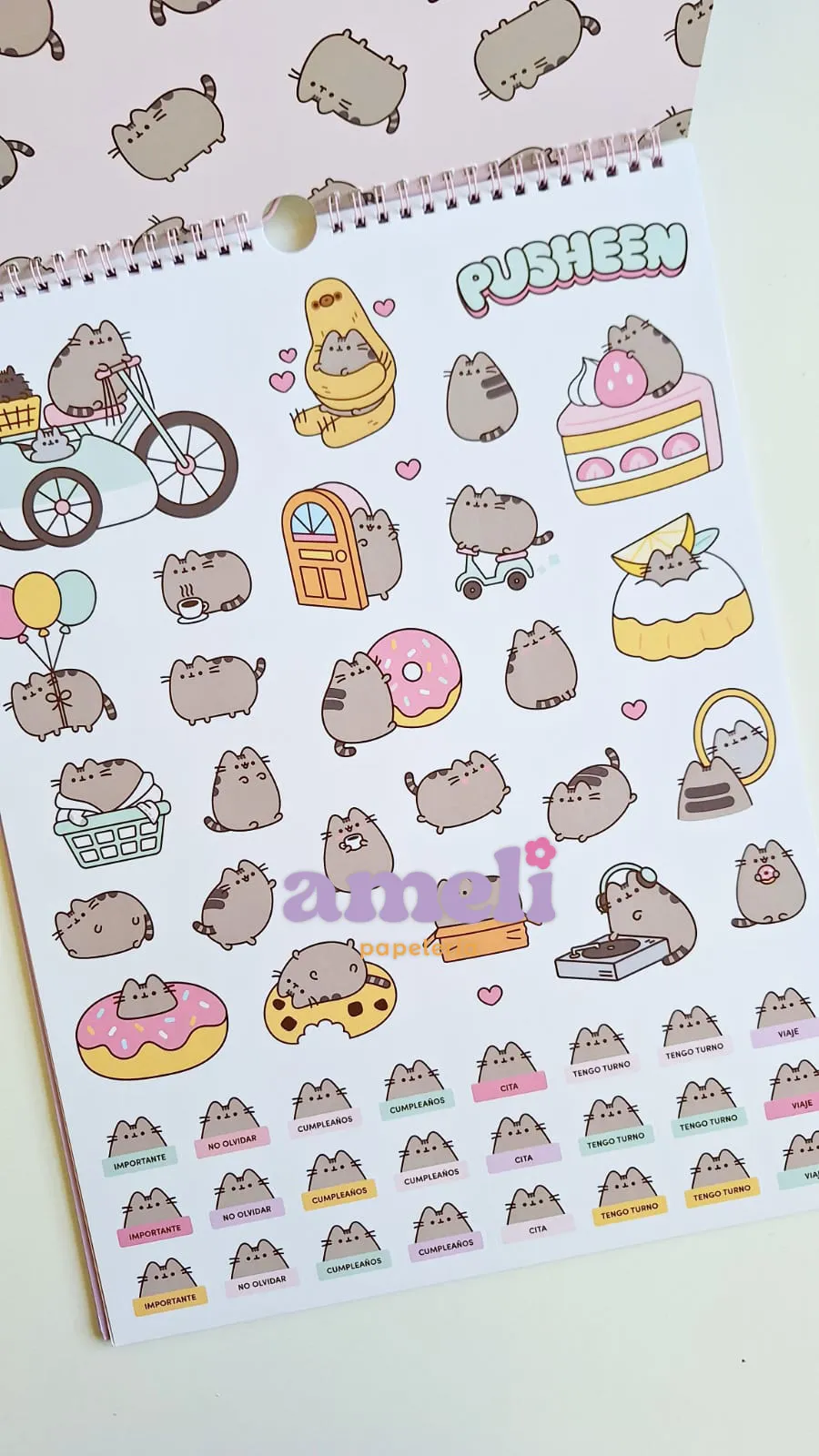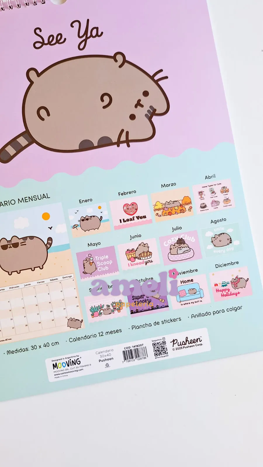 Calendario 2026 de pared Mooving con diseño de Pusheen. Ideal para organizar el año con estilo.