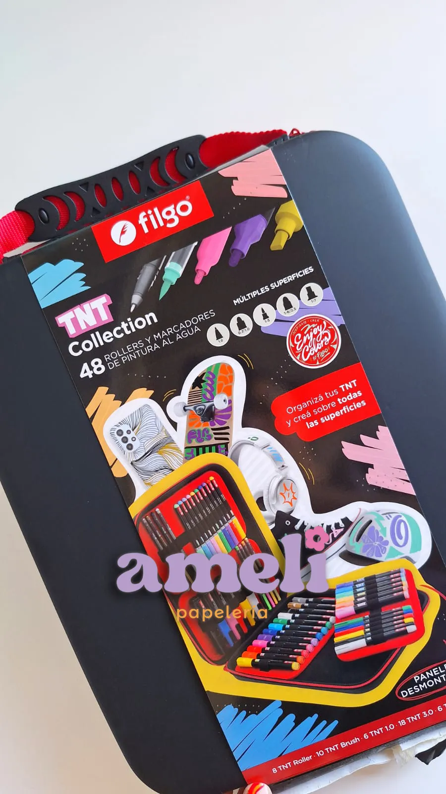 Cartuchera / valija rigida con 48 rollers y marcadores de pintura acrílica