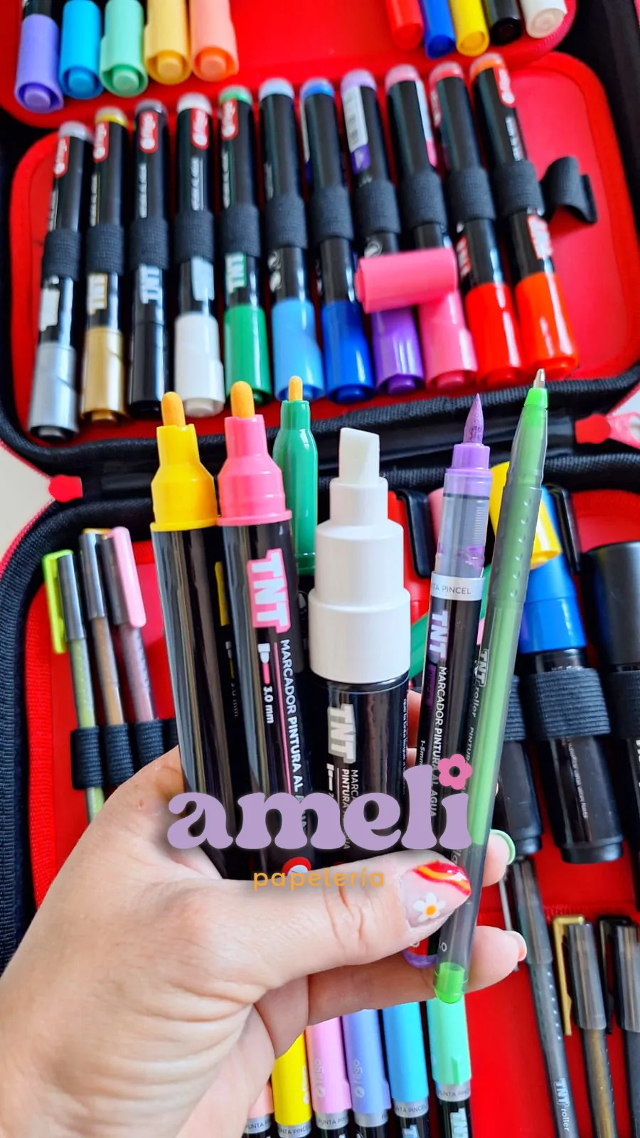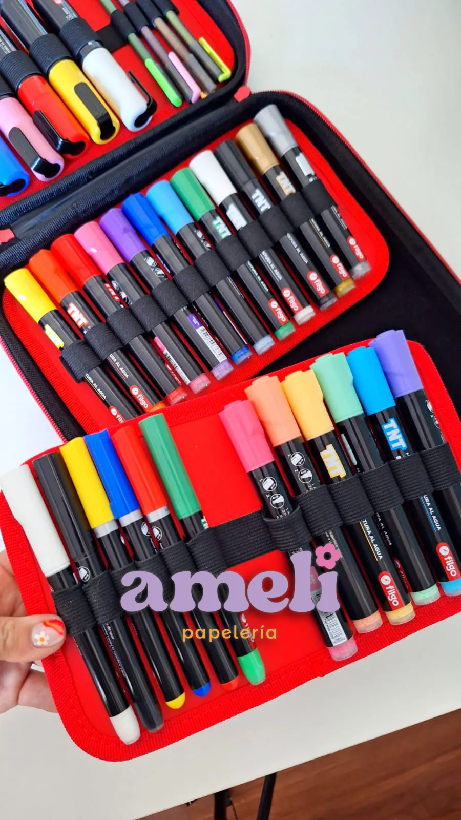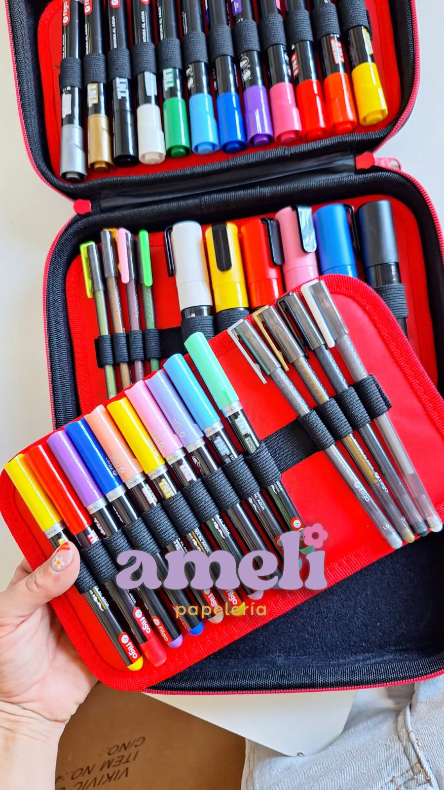 Cartuchera/valija rigida con 48 rollers y marcadores de pintura acrílica