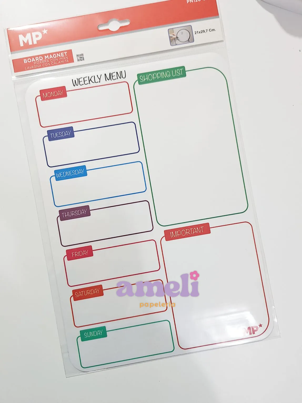 Planificador menú semanal, pizarra magnética