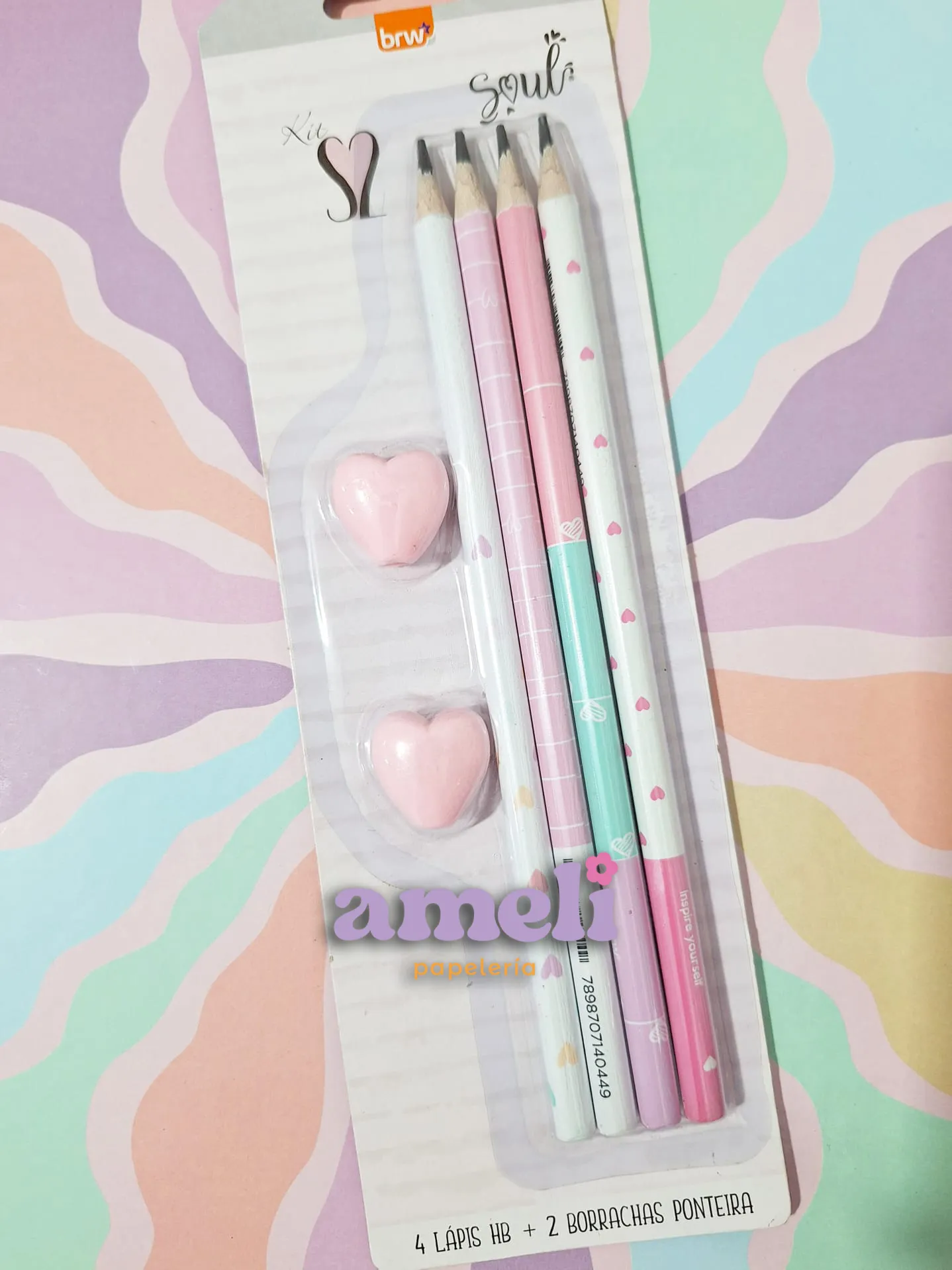 Set x 4 lápices y 2 gomas corazones Brw