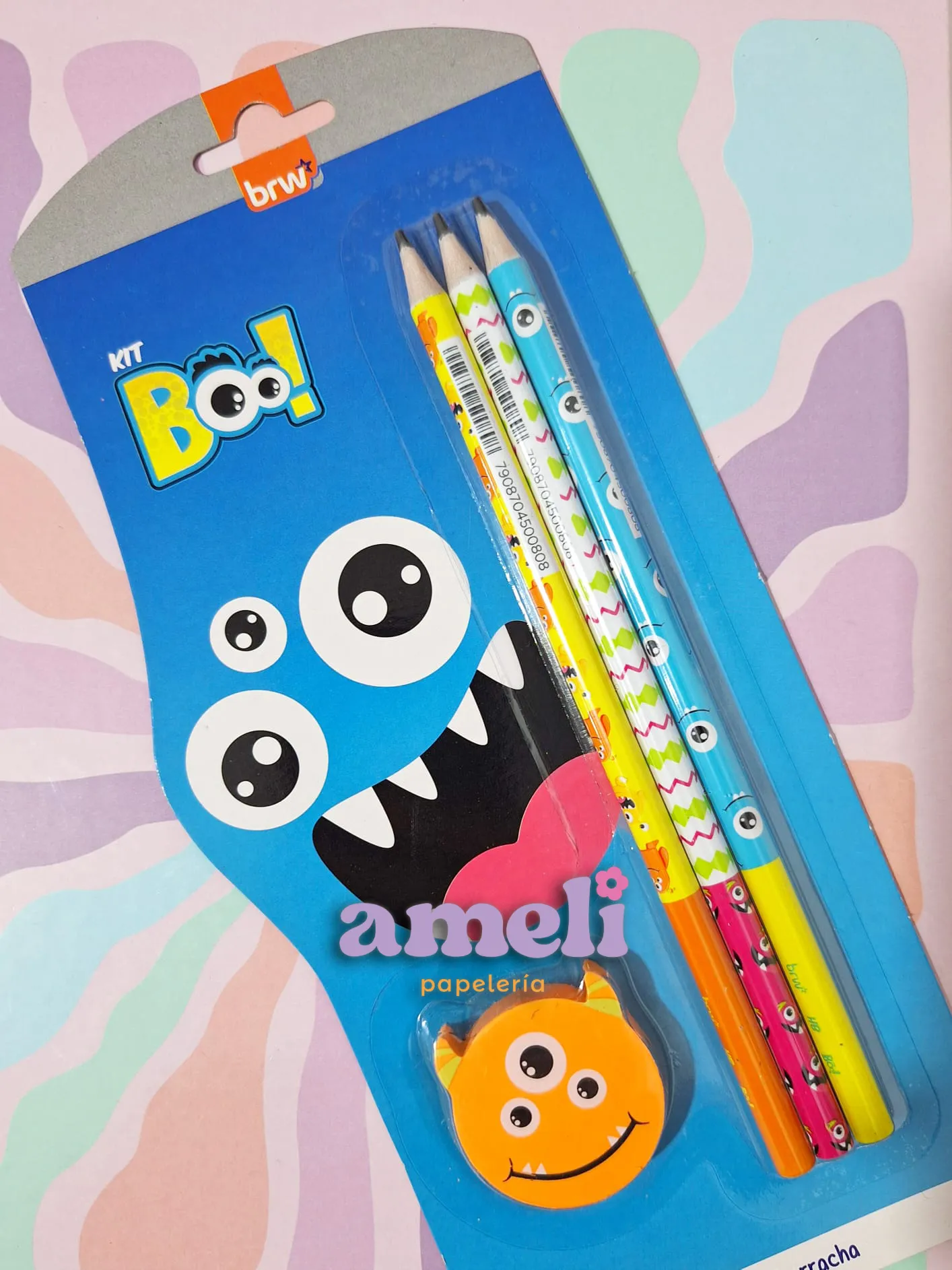 Set Boo Monster Brw: 3 lápices + goma cantidad
