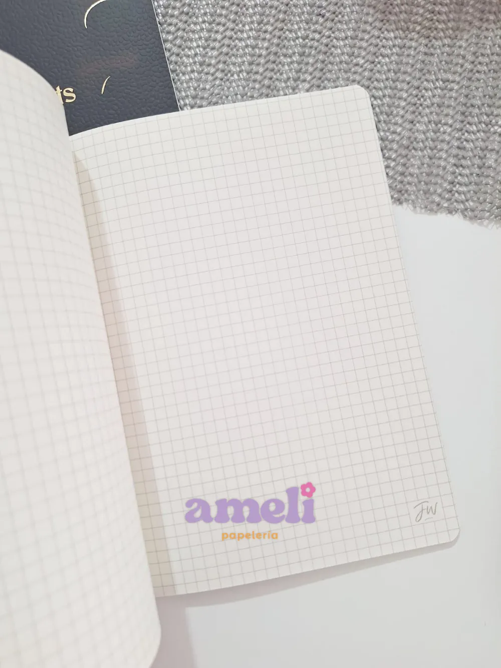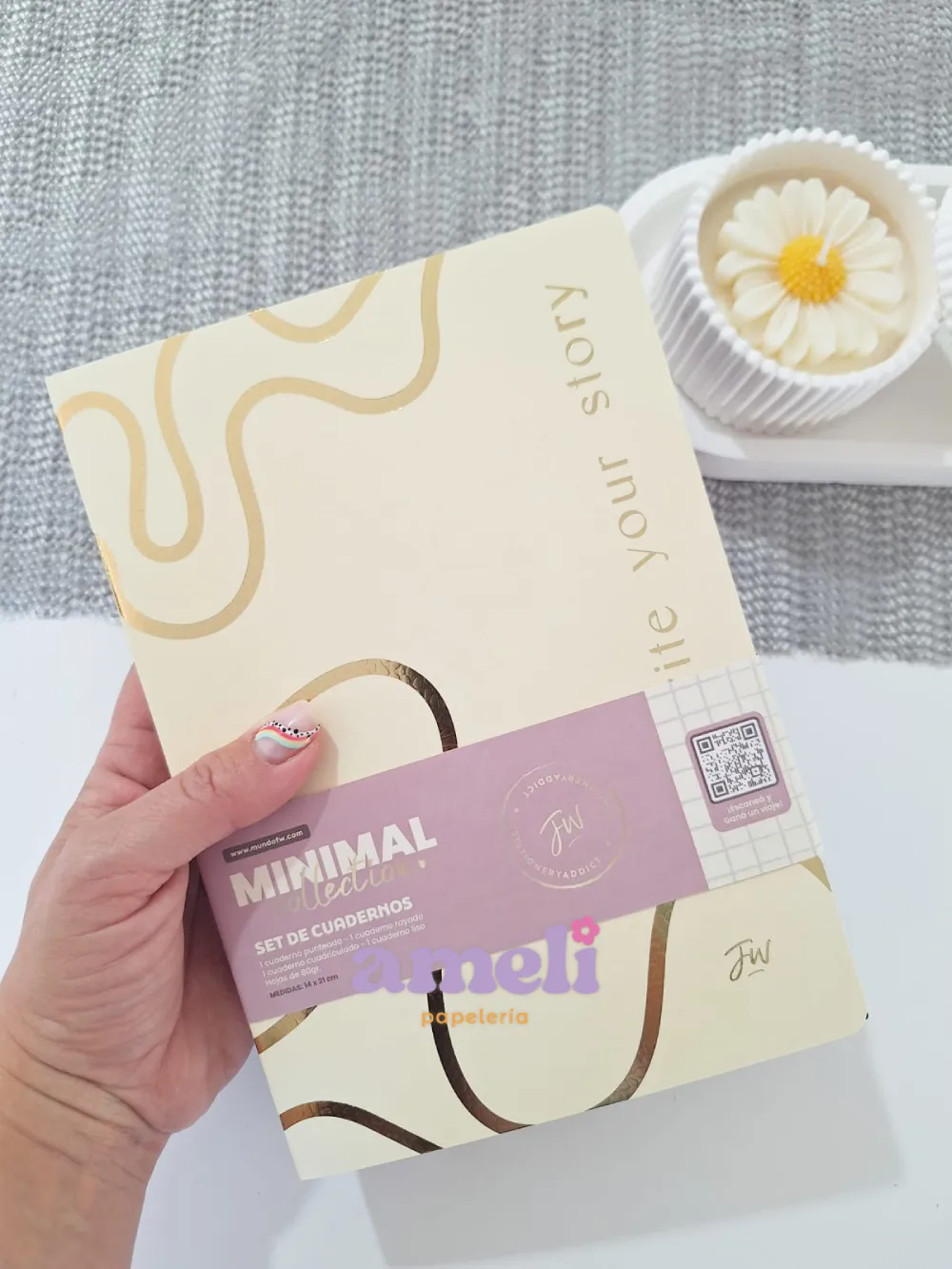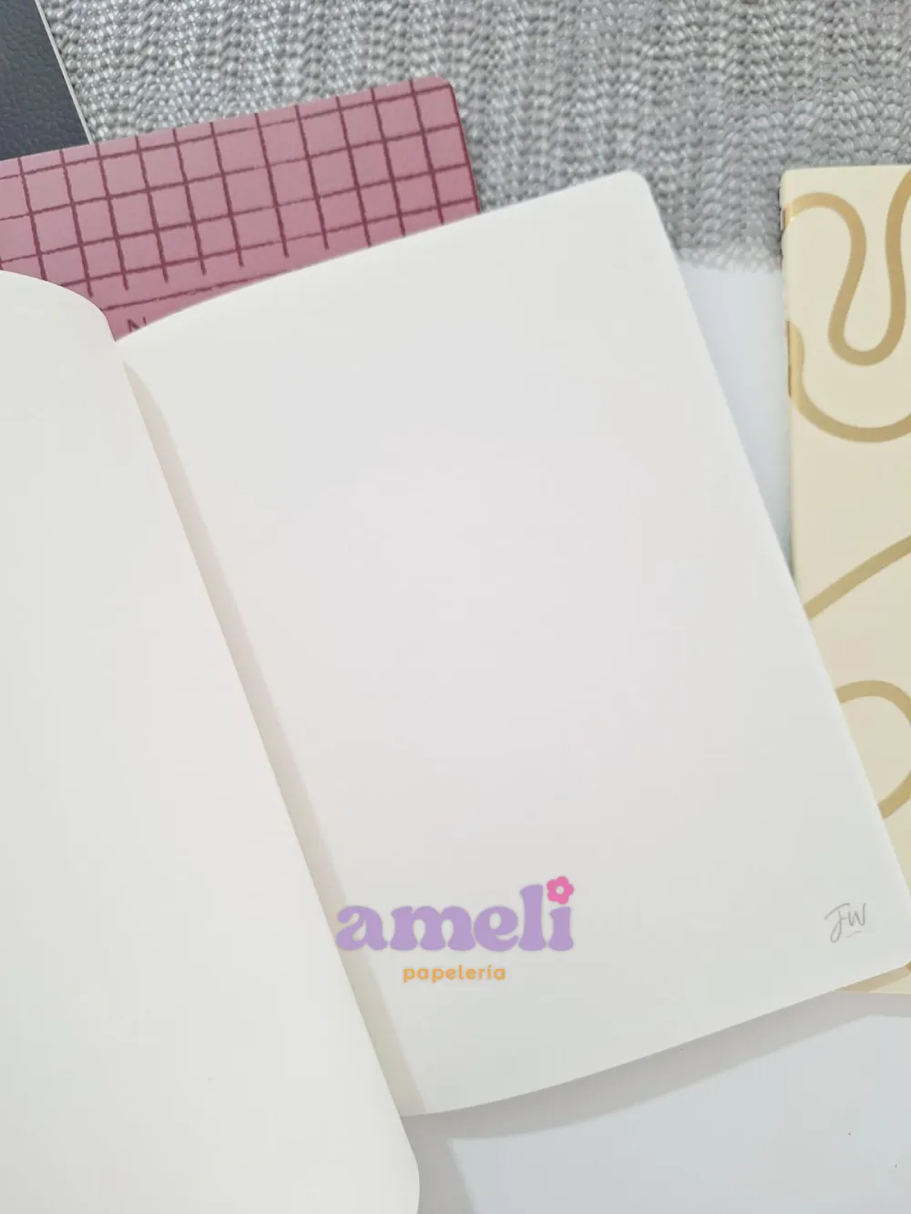 Set de 4 cuadernos con hojas rayadas, cuadriculadas, lisas y bullet. Tapa 250g de papel texturado laminado. Detalles en stamping. 32 hojas de 80g. Tamaño 148 x 210 mm. Lomo cocido