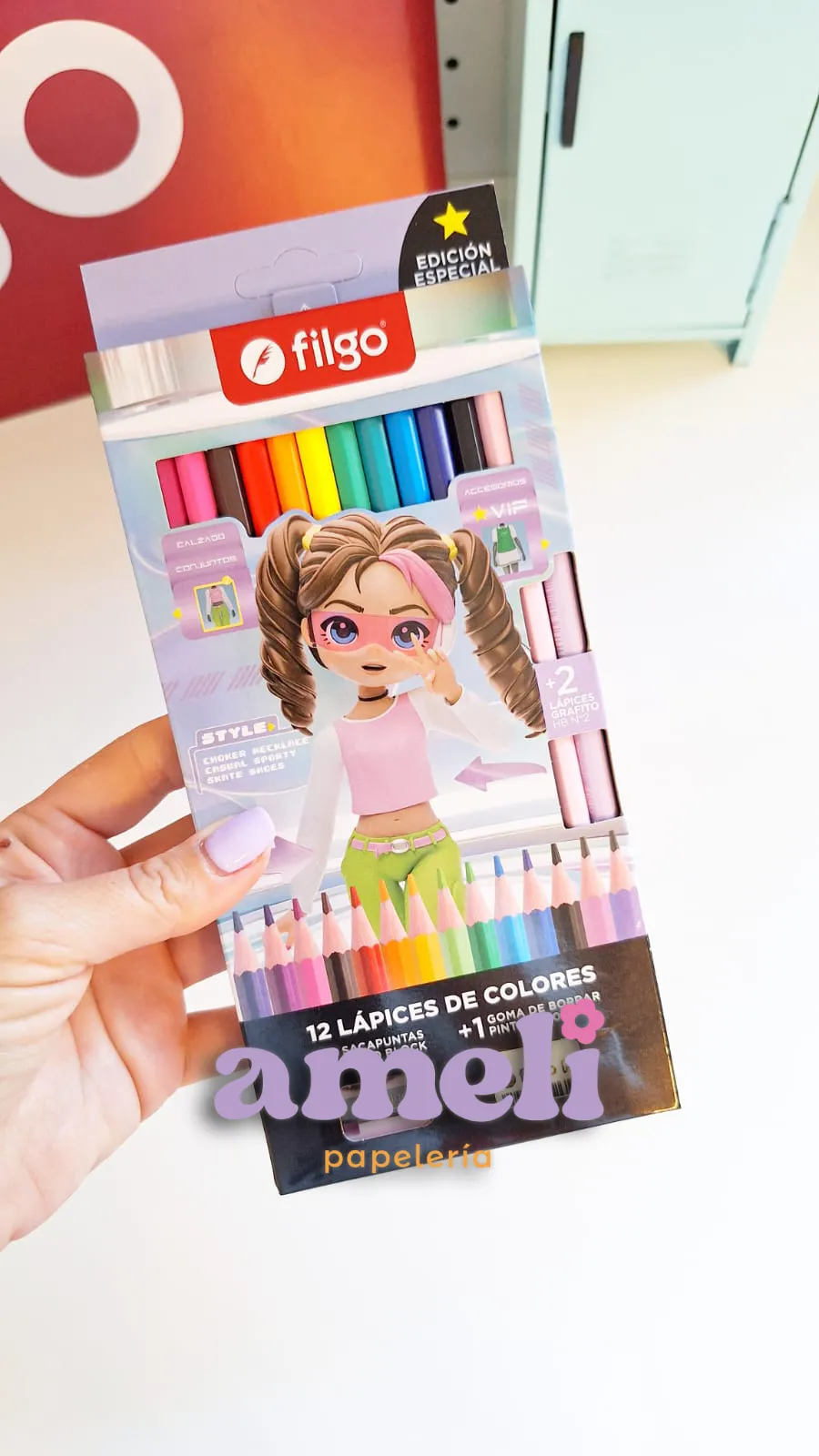 Set escolar Filgo 12 colores + 2 lápices + sacapuntas + goma